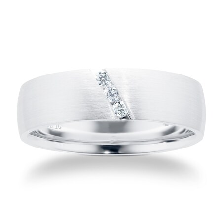 Goldsmiths Platinum 0.09ct Diamond Set Diagonal Matt Mens Wedding Ring