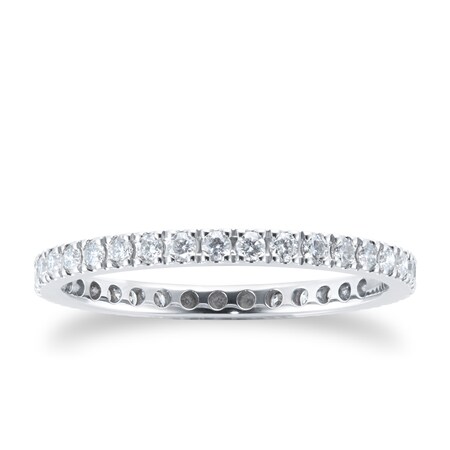 With 0.50 carat total weight, this striking eternity ring features brilliant cut diamonds in a stunning pave setting for flawless radiance.
