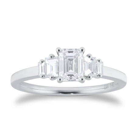 Goldsmiths Platinum 1.00ct Diamond Emerald & Baguette Cut Engagement Ring - Ring Size O