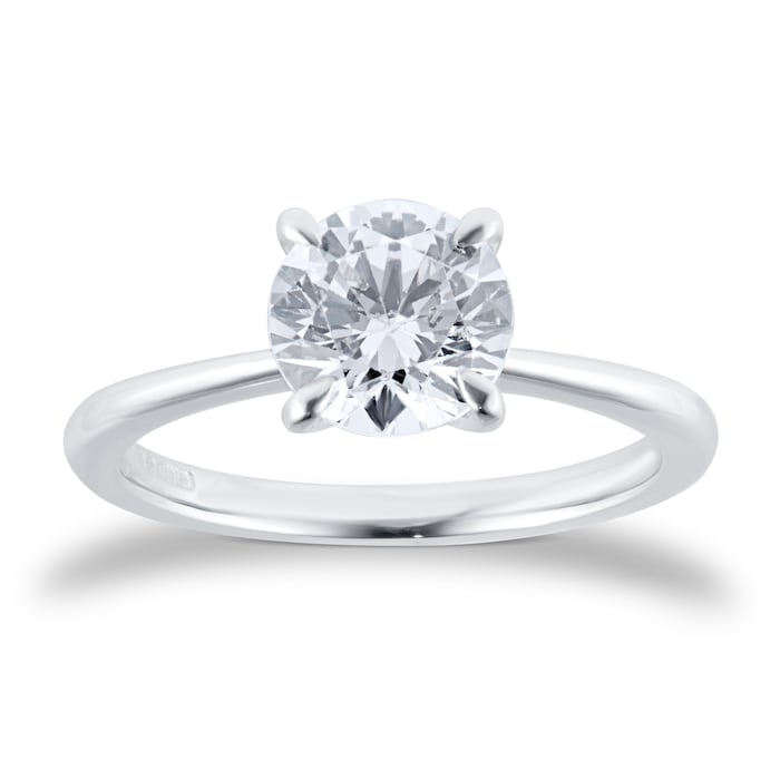 The centerpiece of this stunning ring is a breathtaking 1.00ct brilliant cut diamond, meticulously chosen for its fire and brilliance. Set in platinum, the ring exudes sophistication for an enduring beauty.