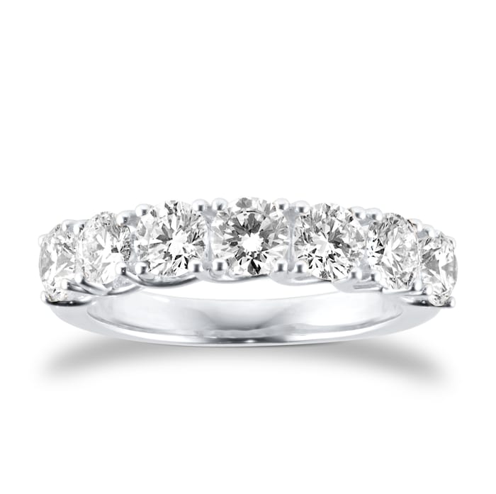 This platinum half eternity ring features seven round brilliant lab-grown diamonds with a total weight of 1.50ct. Each stone is selected for its exceptional clarity and colour, creating a radiant band that celebrates enduring love.