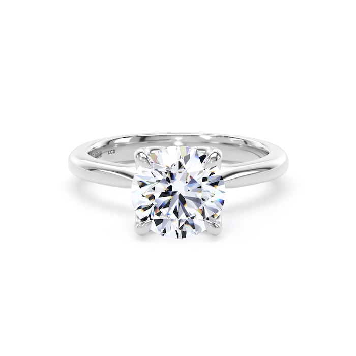 This platinum engagement ring features a single round brilliant lab-grown diamond weighing 2.00ct. The central stone is certified by the International Gemological Institute, and is selected for its exceptional clarity and colour — the highest standards of excellence.