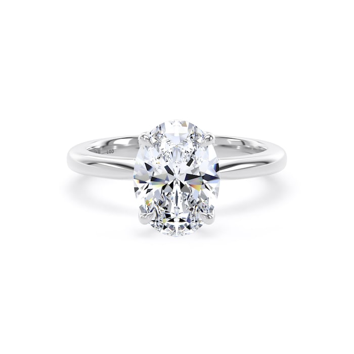 This platinum engagement ring features a single oval cut lab-grown diamond weighing 2.00ct. The central stone is certified by the International Gemological Institute, and is selected for its exceptional clarity and colour — the highest standards of excellence.