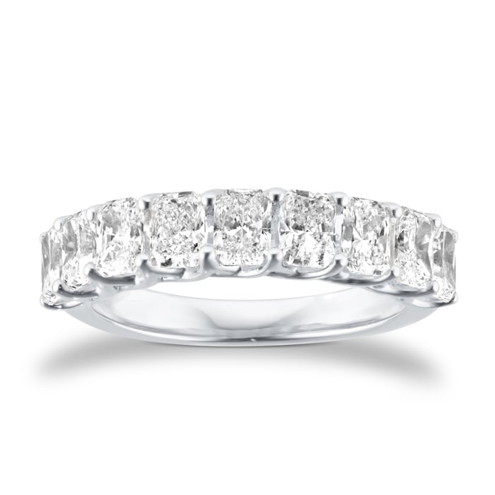 This platinum half eternity ring features nine radiant cut lab-grown diamonds with a total weight of 2.00ct. The angular brilliance of the radiant cut adds a contemporary edge to the classic eternity silhouette.