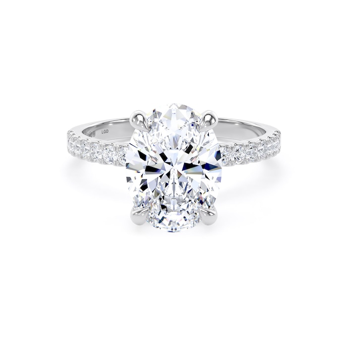 - Crafted in platinum with a 2.50ct oval cut lab-grown centre stone