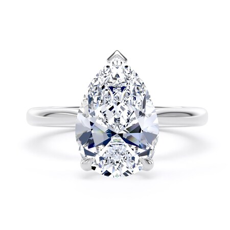 - The platinum solitaire setting highlights the gentle elegance of the pear‑cut form.