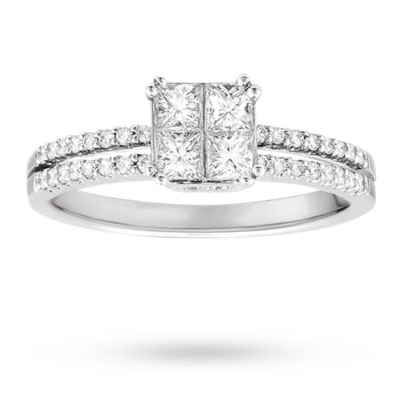 Goldsmiths Princess Cut 0.75 Total Carat Weight Cluster And Diamond Set Shoulders Ring Set In 18 Carat White Gold