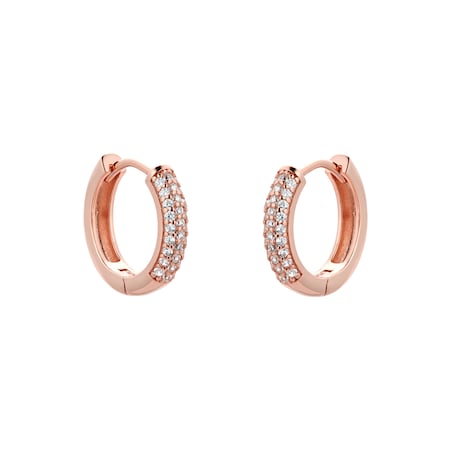 Rose Gold Plated Silver Pave Cubic Zirconia Huggie Earrings.