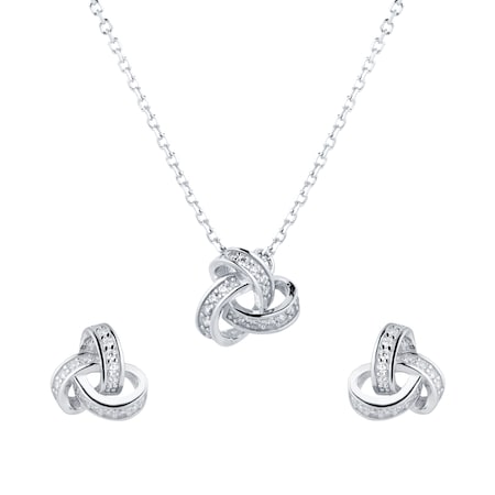 Goldsmiths Silver Cubic Zirconia Triple Loop Knot Pendant & Earrings Set
