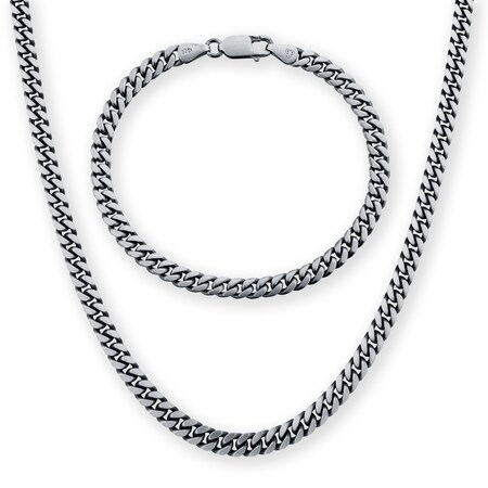 Silver Mens Oxidised Curb Necklace & Bracelet Set. Necklace Length 50cm. Bracelet Length 20cm