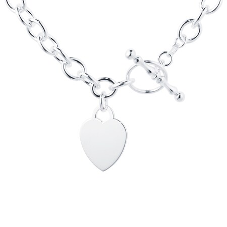 A delicate sterling silver heart pendant is paired with a chic oval belcher link chain, held securely with a T-bar closure for a hint of bold glamour.