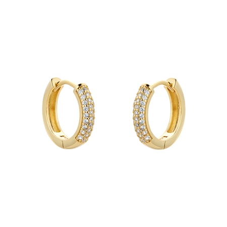 Yellow Gold Plated Silver Pave Cubic Zirconia Huggie Earrings.