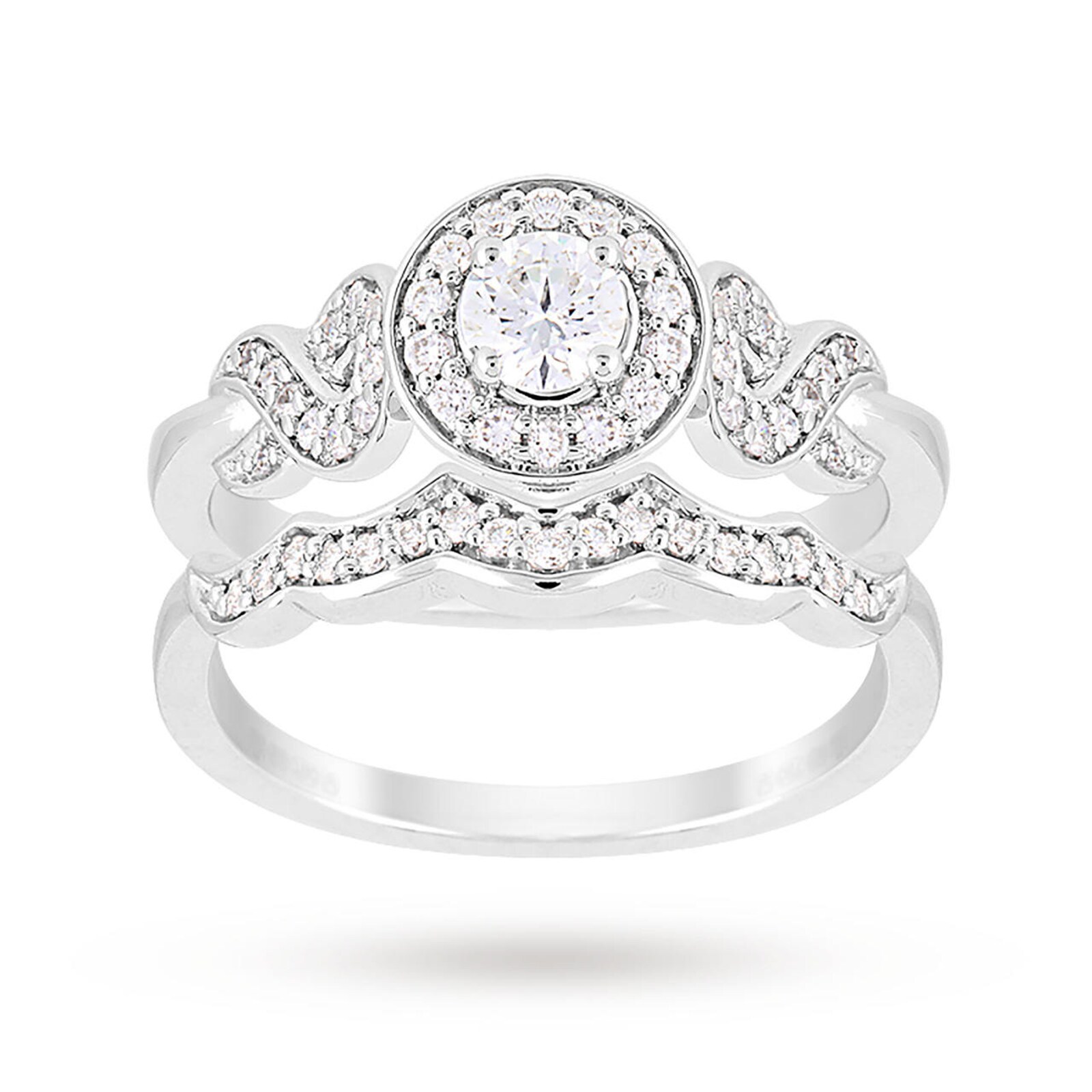 With 0.54 carat total weight, this brilliant diamond bridal set is a forever symbol of commitment to complement everlasting love.