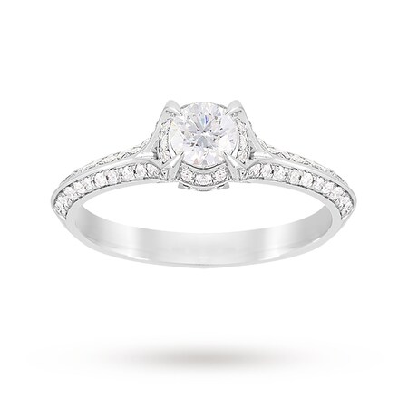 - Platinum diamond engagement ring with 0.56 carat total diamond weight
