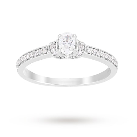 With 0.45 carat total weight, an oval diamond is held in a traditional four claw setting.