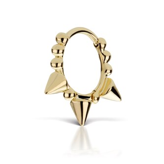 Measuring 2.5mm wide by 3.5mm long, this small gold spike is both edgy and elegant.