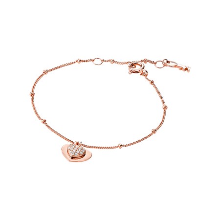 Kors Love, Modern designs detailed with messages of love. Michael Kors Women's Pave Heart 14ct Rose Gold Coloured Sterling Silver Bracelet. This pave heart bracelet features 14ct rose gold coloured sterling silver, beaded chain detail and a spring ring clasp.
