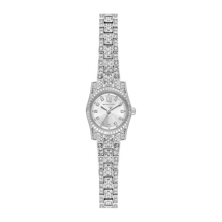 The Lexington watch exudes opulent glamour with its silver hue and sparkling pavé accents. Made entirely of stainless steel, this mini timepiece boasts a round face with a beveled topring and a matching bracelet strap. Slip it on to give evening outfits a maximum dose of dazzling.