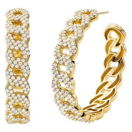 Crafted from sterling silver and finished with a radiant 14ct gold coloured, these hoop earrings feature a stylish curb-link design illuminated by sparkling pavé accents. The lightweight construction makes them perfect for day-long wear.