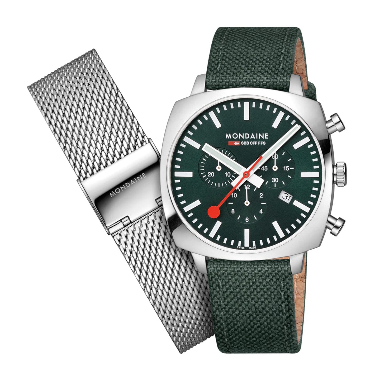 Mondaine Grand Cushion Set 41mm Mens Watch Green MPN: MSL.41460.LF.SET