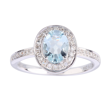 Goldsmiths Oval Aquamarine And Diamond Ring In 9 Carat White Gold