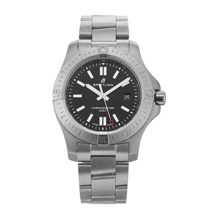 This Pre-Owned Breitling Colt Automatic 44mm Stainless Steel A17388101B1A1 features a 44mm Stainless Steel case, showcasing a Black dial and sapphire crystal glass. Powered by an Automatic movement, this impressive watch also showcases a Stainless Steel bracelet finished with a Folding Clasp for increased security. This timepiece is also water resistant to 200 metres.