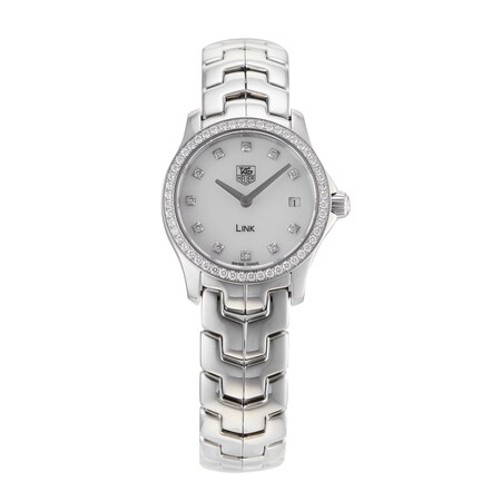 This Pre-Owned TAG Heuer Link Ladies Watch WJF1417.BA0859 features a 24mm stainless steel case fitted with a white mother of pearl dial, sapphire crystal glass, and a date complication.