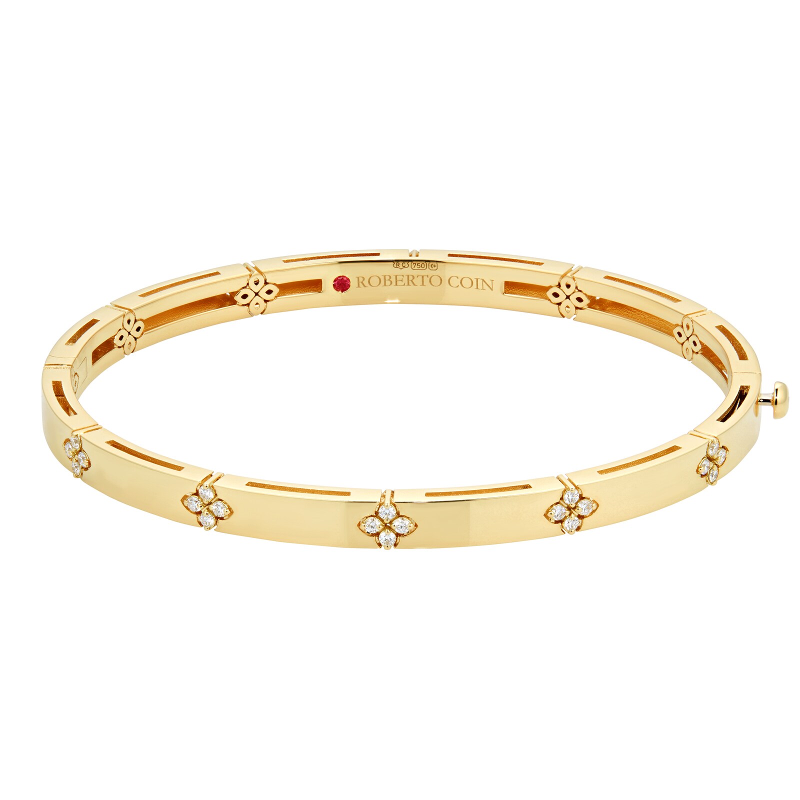 Roberto Coin signs each one of his pieces with a small ruby casted inside the jewel, in direct contact with the skin of who wears it. This magical signature, surrounded by an antique halo of legend, represents the message of good wishes that Roberto Coin dedicates to his passionate clientele.