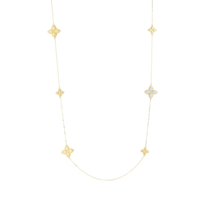 Inspired by the floral decorations of Venetian palaces, this collection by Roberto Coin represents the material shape of the most romantic side of a woman's imagination - made up of the flowers that bloom from the hands of skilled artisans and the princesses that live inside every single woman.