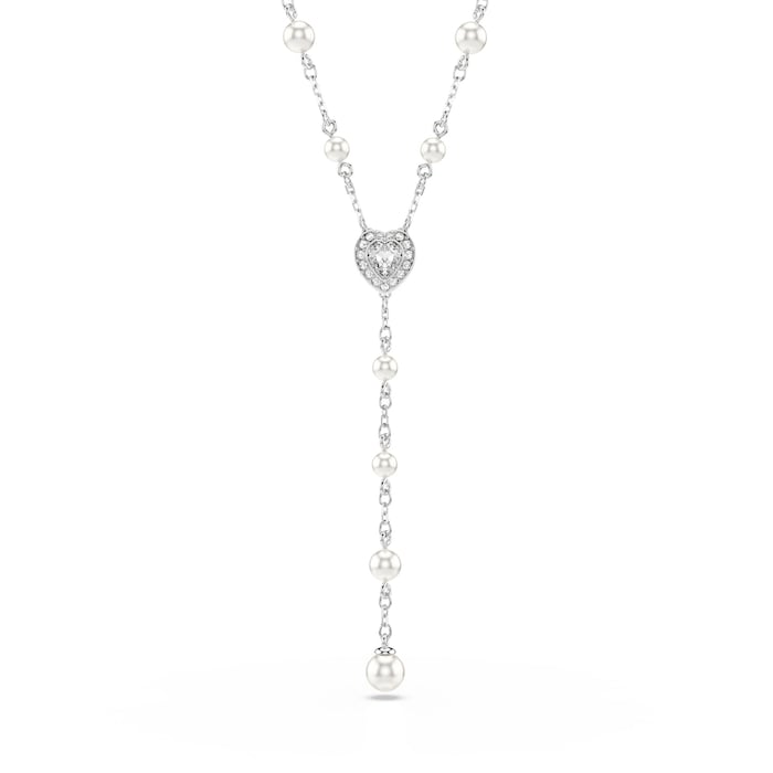 Crafted with finesse and timeless beauty, this T-shaped necklace is emblematic of Swarovski’s joyful extravagance. The rhodium plated design features a delicate chain accented with Swarovski Crystal Pearls. A heart-shaped motif is placed at the centre and is surrounded by glittering pavé, while the hanging strand provides a final flourish of sophistication. Pair this necklace with other matching jewellery to create your own radiant combinations.