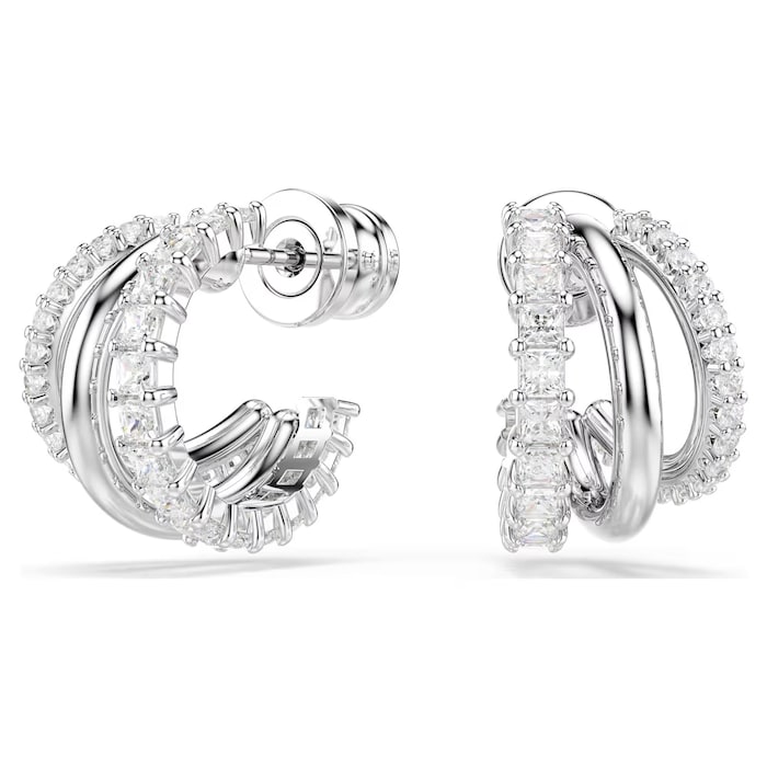 SWAROVSKI Hyperbola White Rhodium Plated Round Cut Crystal Hoop Earrings MPN: 5737110