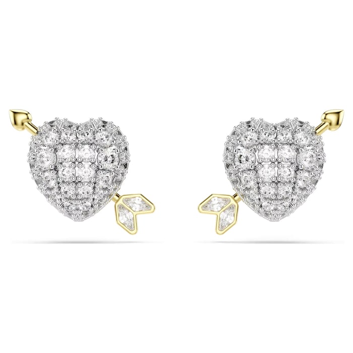 Celebrate true love with these heart-shaped Idyllia studs. Each piece features a rhodium plated heart with glittering Swarovski Zirconia, pierced by Cupid’s gold-tone plated arrow. A subtle yet expressive way to define your personal style.