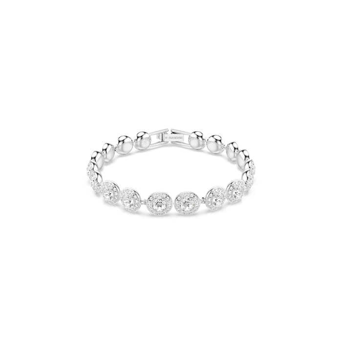 Wrap your wrist in light with this luminous Una Angelic bracelet. The rhodium plated design features individual links, each set with a brilliant central crystal and a halo of smaller round-cut crystals. An ethereally elegant choice that can be paired with matching pieces from the same family.