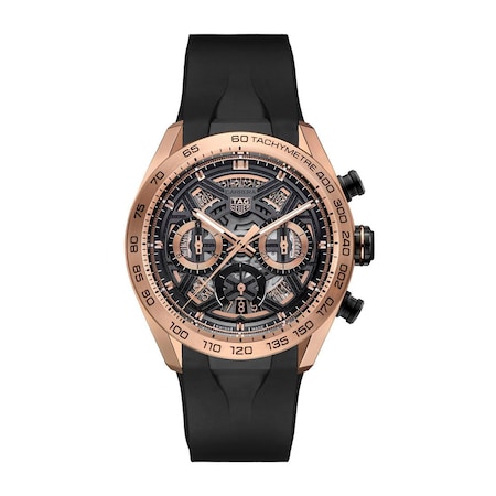 The TAG Heuer Carrera Chronograph Extreme Sport combines the elegance of 18K 5N rose gold with a high-performance design. This 44 mm timepiece redefines racing-inspired craftsmanship, blending bold aesthetics with technical excellence.