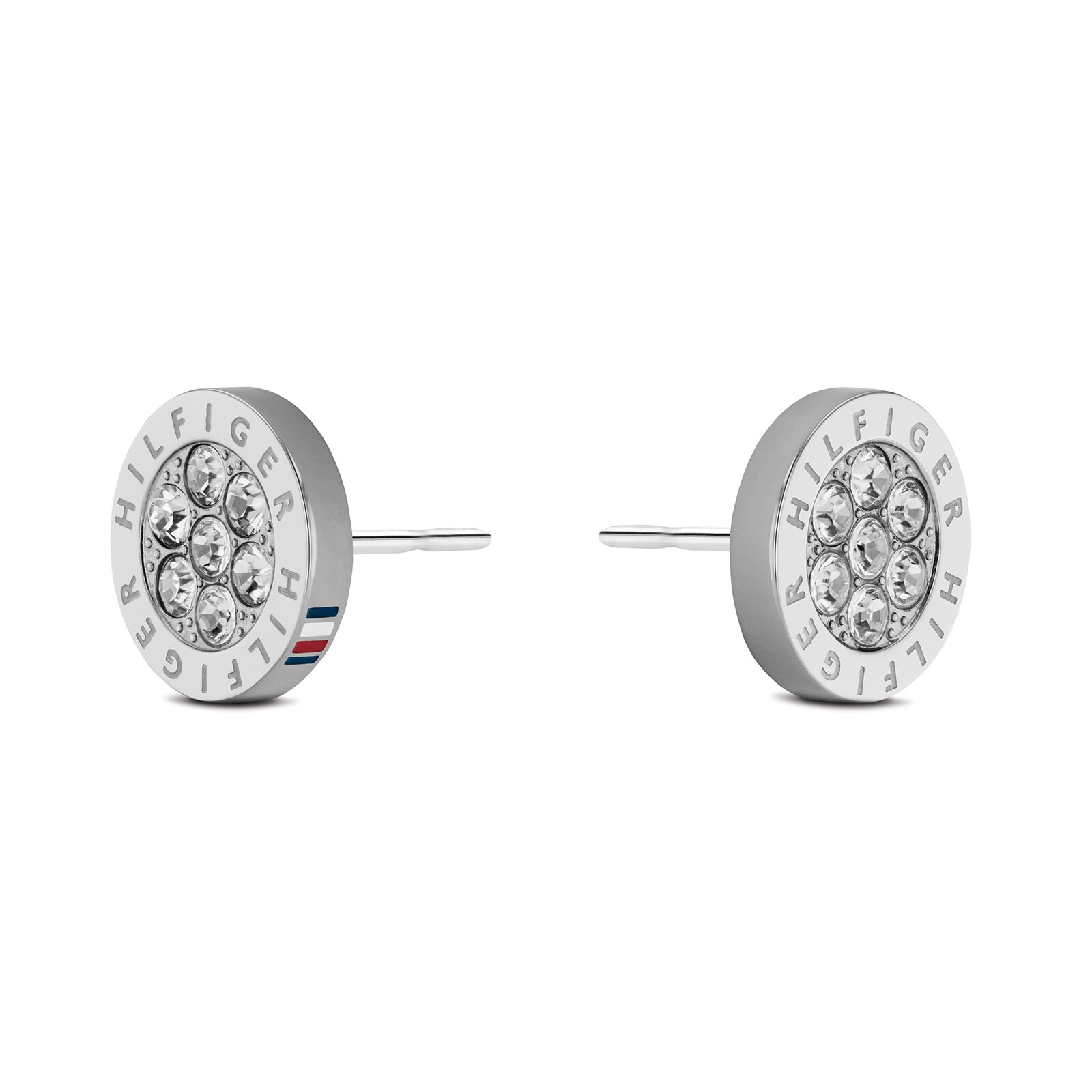Tommy Hilfiger Stainless Steel Logo Crystal Stud Earrings