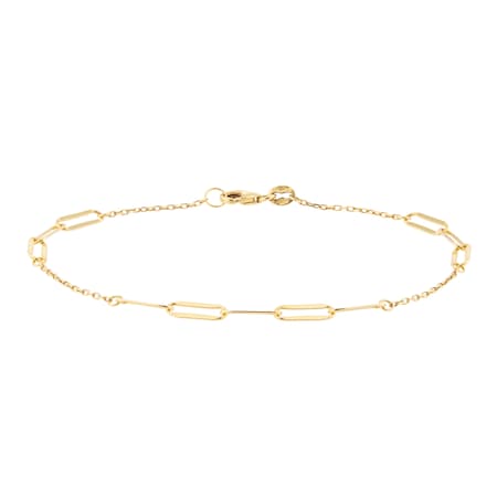 Crafted from 9ct yellow gold, this understated, timeless paperclip station braclet is equally as effective when worn alone or paired with other pieces for a stylish, stacked aesthetic. An instant classic.