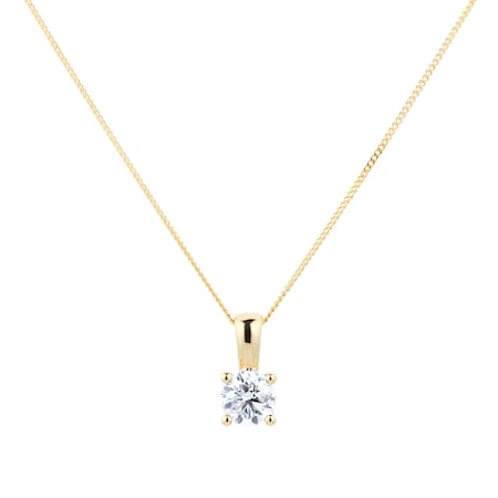 Fashioned in 18ct yellow gold, this necklace perfectly frames a 1.00ct diamond, radiating brilliance and allure in every facet. The round brilliant cut accentuates the diamonds' mesmerising sparkle.