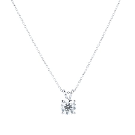 With 2 carat total weight, a round brilliant cut diamond pendant hangs beautifully from a delicate platinum chain.