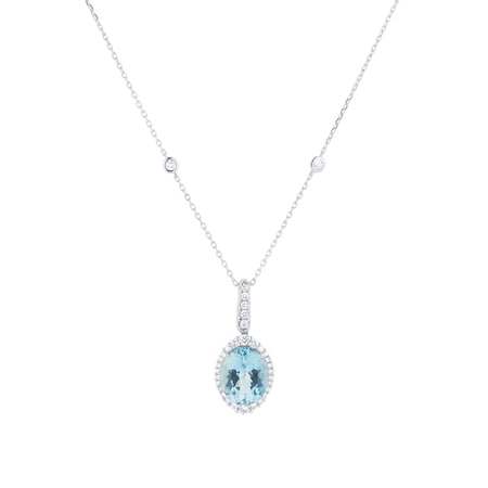 Set in 18ct white gold, this oval cut aquamarine and brilliant cut diamond pendant, with a total diamond weight of 0.33cts has outstanding beauty, clarity and sophistication.