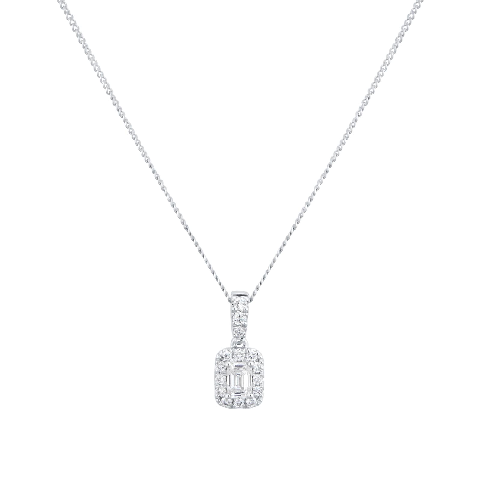 Goldsmiths 9ct White Gold 0.28cttw Emerald Cut Diamond Halo Pendant