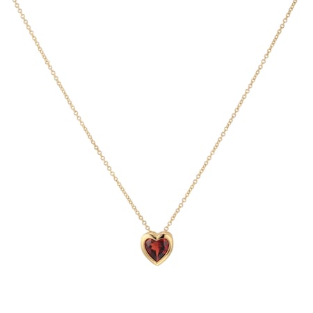 The heart cut, 6mm garnet is the focal point of this beautiful pendant. Its rich hues are playfully surrounded by a rubover setting, only enhancing the garnets charm.