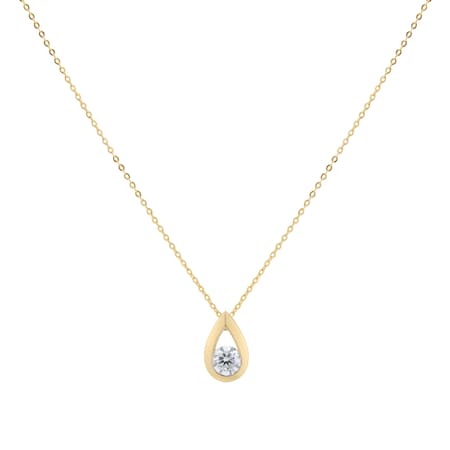 This pendant features a tear drop design, crafted from 9ct yellow gold, and adorned by a sparkling solitaire diamond. With a sleek and contemporary design, this tear drop diamond set pendant exudes timeless beauty.