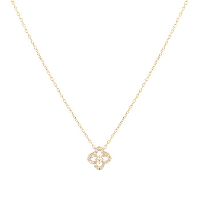 Goldsmiths9ct Yellow Gold 0.10cttw Diamond Floral Motif Necklace