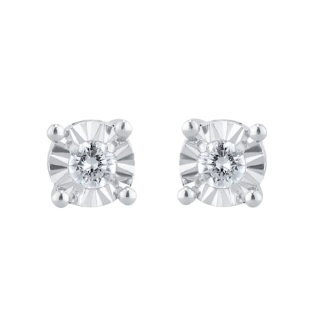 These 9ct white gold stud earrings feature round brilliant cut diamonds in an illusion setting, creating a captivating play of light. With a total diamond weight of 0.10 carat, they offer a delicate sparkle suited to every occasion.