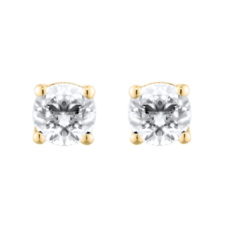 A wonderful addition to every day and any occasion, these glistening solitaire diamond stud earrings are set in an 18ct yellow gold 4-claw setting, allowing the light to radiate through for incredible scintillation.