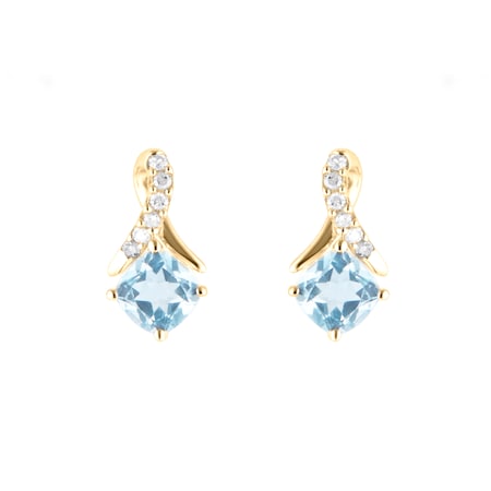 Goldsmiths 9ct Yellow Gold Cushion Cut Blue Topaz and Diamond Stud Earrings