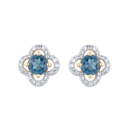 - Diamond and blue topaz in a floral stud design