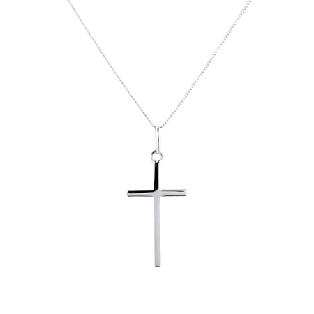 Crafted from 9ct white gold, this necklace presents a simple, understated cross pendant suspended from a 45mm chain.