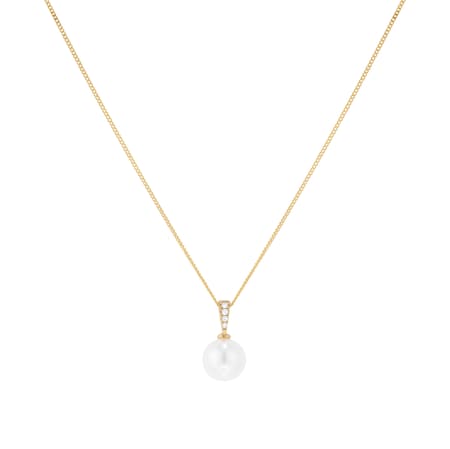 Goldsmiths 9ct Yellow Gold 6.5-7mm Freshwater Pearl and Diamond Pendant