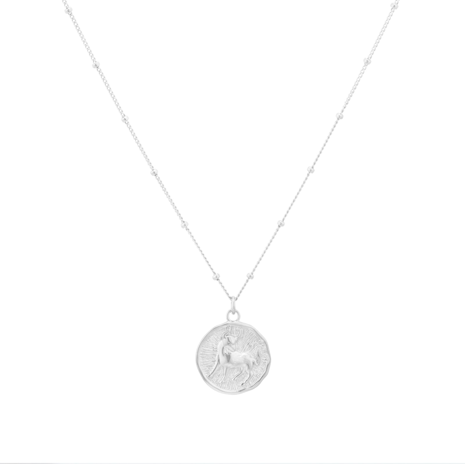 Goldsmiths Sterling Silver Taurus Beaded Chain Zodiac Pendant